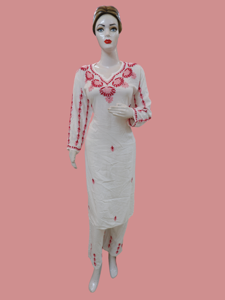 Linen Angrakha Kurti With Lucknowi Chikankari Handwork