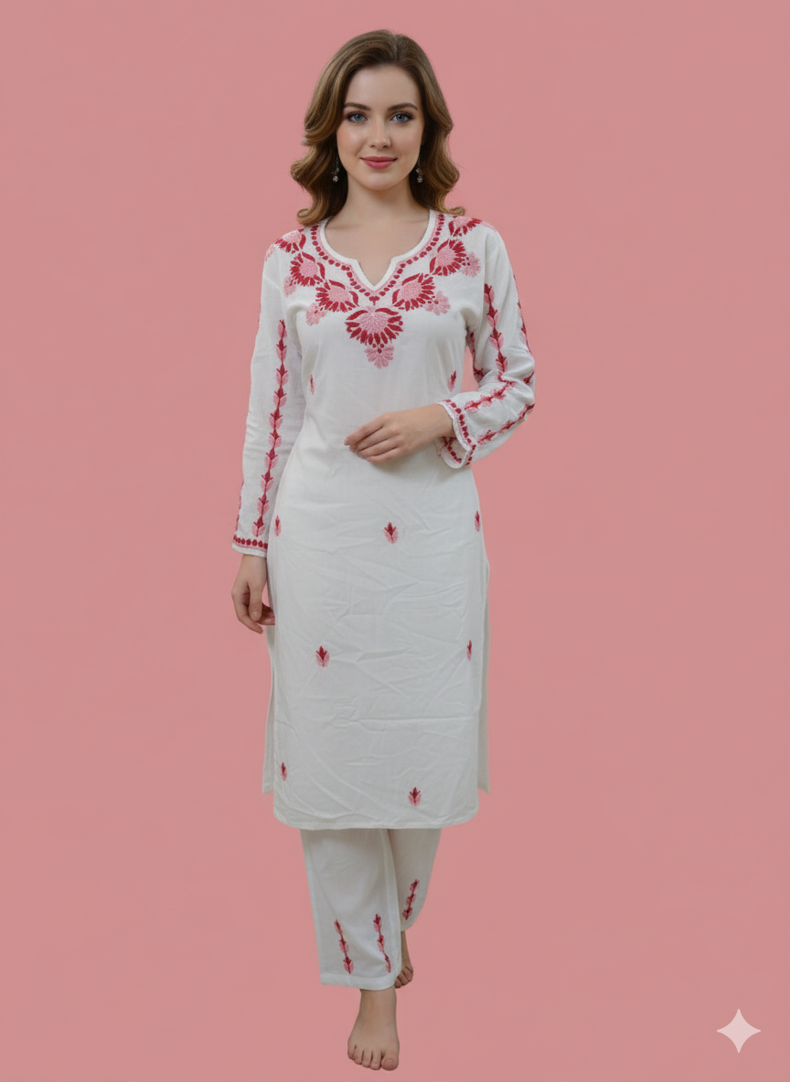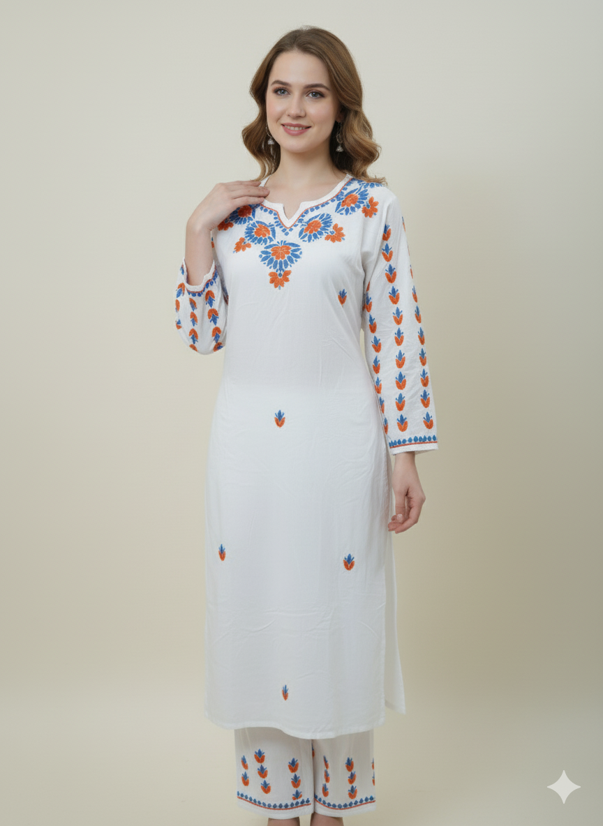 DISHA White Rayon Set – Timeless Elegance by Chinmay Creations