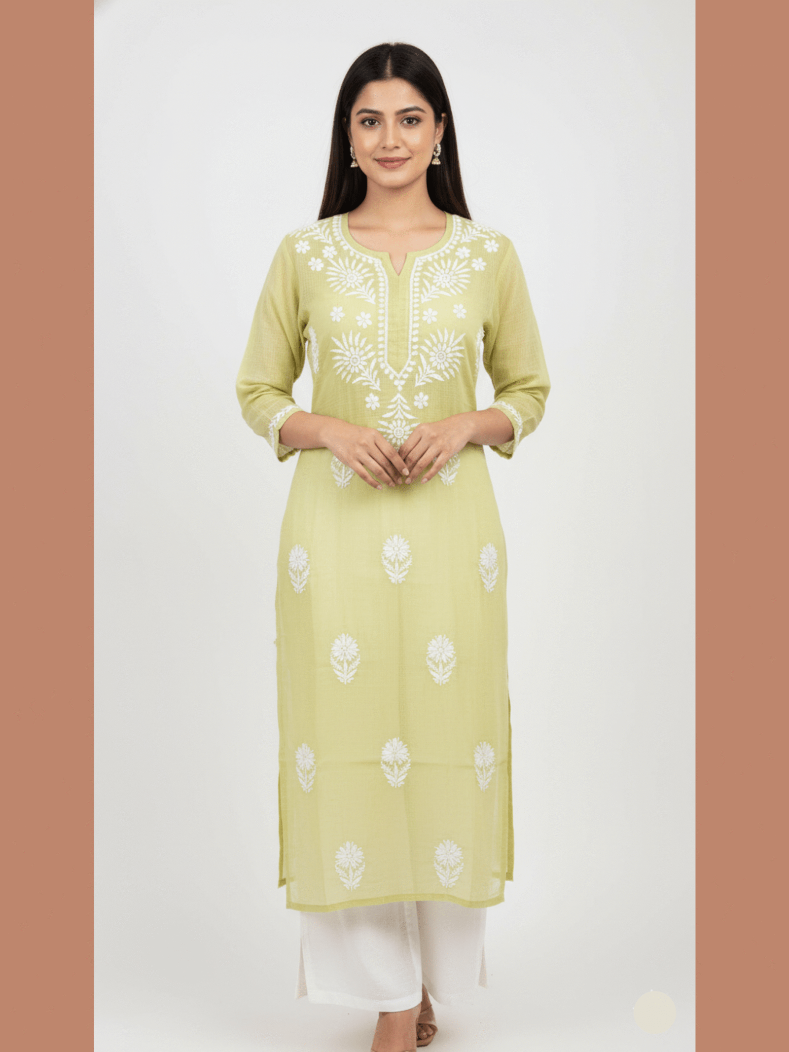 Linen Angrakha Kurti With Lucknowi Chikankari Handwork