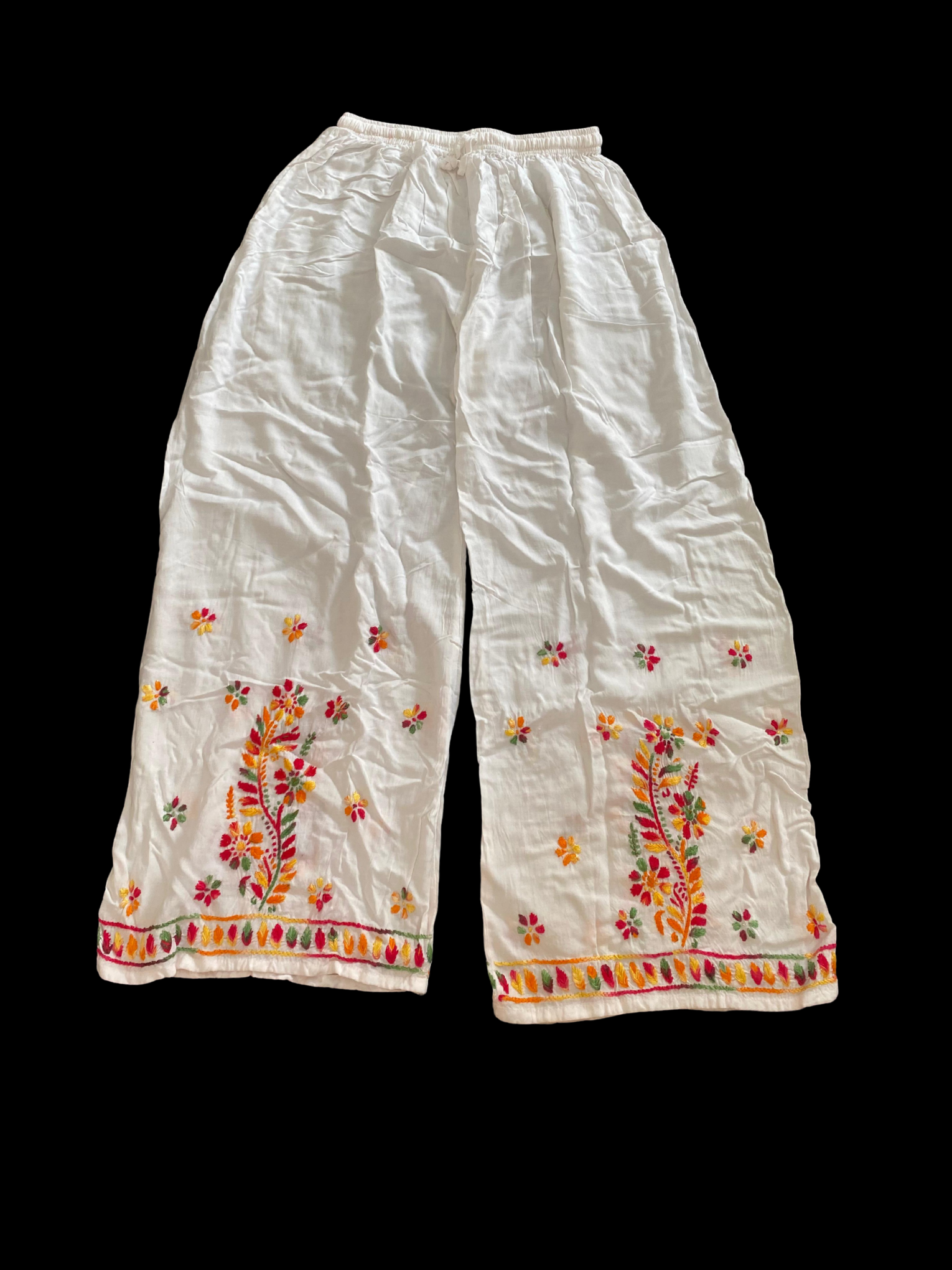 White Multi Rayon Palazzo – Timeless Elegance by Chinmay Creations